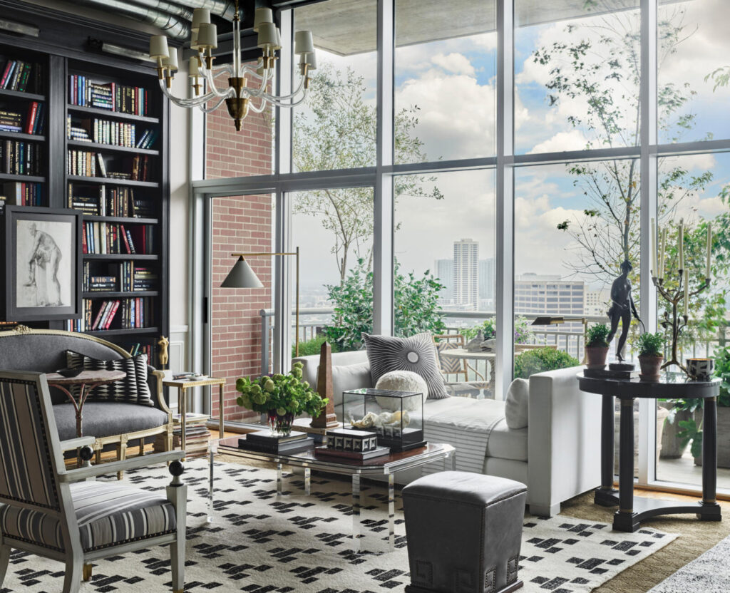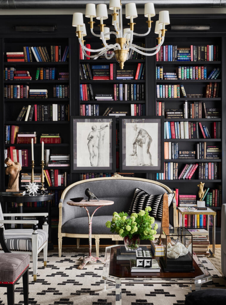 That’s not to say decorating with dark colors doesn’t take a bit of planning and research. Melinda has been dubbed our firm’s unofficial president of paint. She spends a lot of time making paint selections at the start of a project, explaining, “Paint is the most important decision for the look, feel, and cohesion of a home.” In our Houston Museum District apartment, we used Black Jack by Benjamin Moore, and this unifying backdrop color pulls together our art, book, and decor collections.