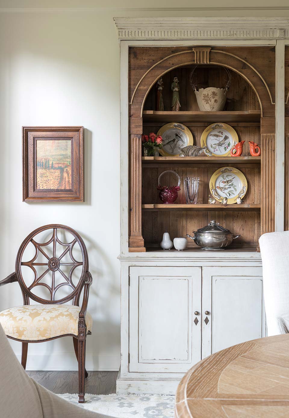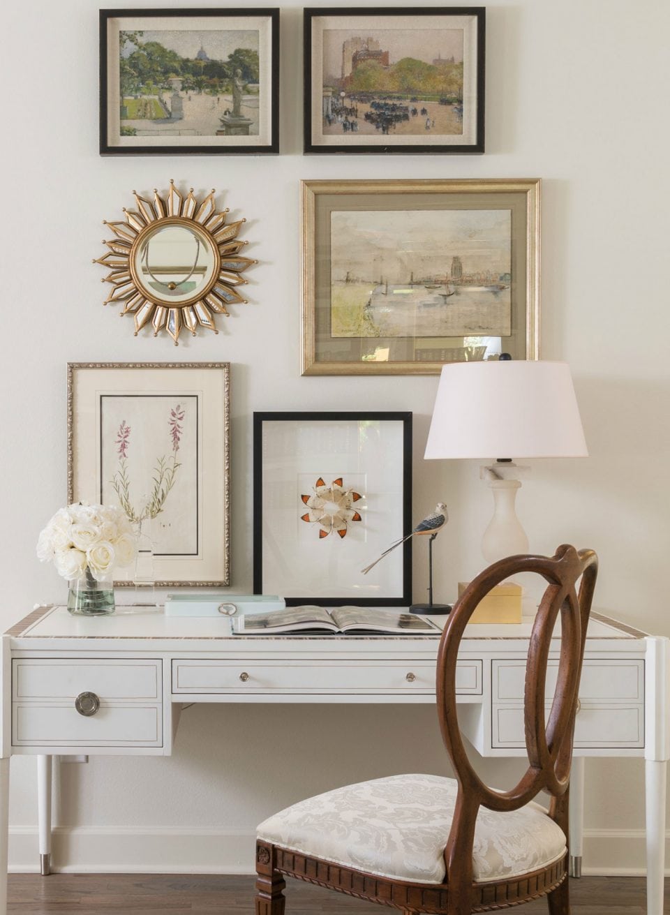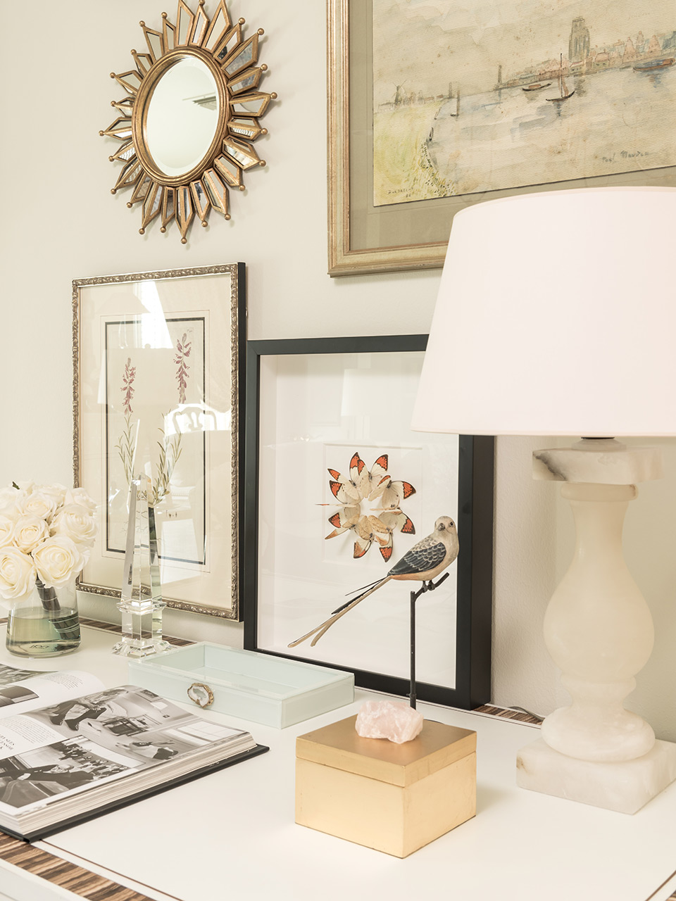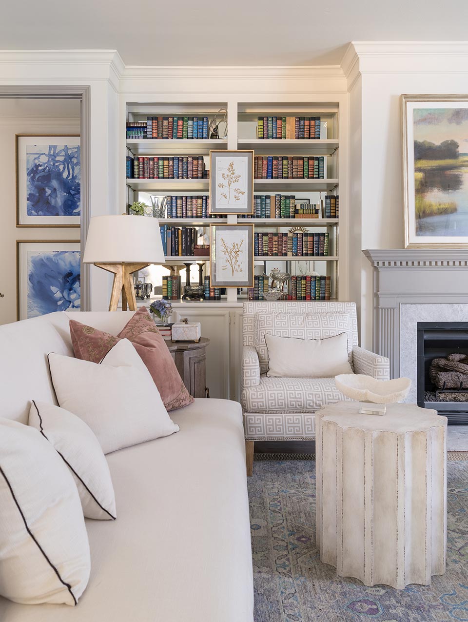 A close friend and client purchased a home, and after lots of paint and a small remodel, a backdrop was created for her well appointed traditional yet New Southern look. A soft, feminine palette, along with lighting and draperies, added the finishing touches.
